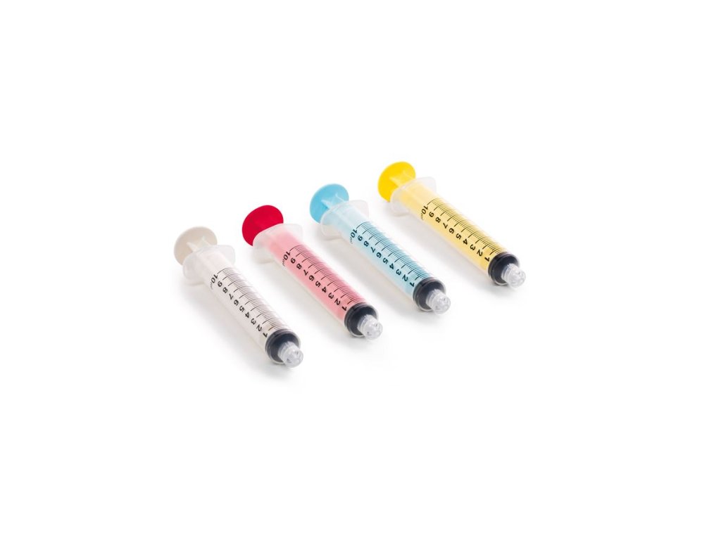 Barevně označené stříkačky nabízejí rychlý a snadný způsob organizace a identifikace stříkaček pro výplachové a jiné roztoky.