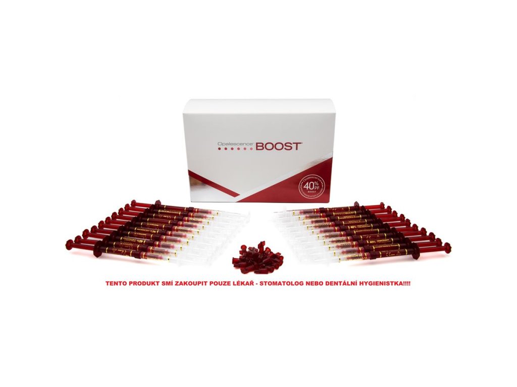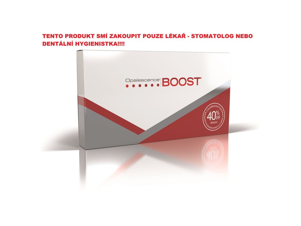 Pro zdravotnické bělení zubů na zubařském křesle v zubní ordinaci. Opalescence Boost je alternativní konzervativní metoda pro ošetření tmavých, vnitřně zbarvených zubů (ve srovnání s korunkami, fazetami atd.), kdy je zbarvení způsobeno onemocněním, poraněním nebo léčbou, např. vrozené, systémové, metabolické farmakologické, traumatické nebo iatrogenní faktory, jako je dentální fluoróza, žloutenka, tetracyklin a minocyklinové zbarvení u dospělých, porfyrie, trauma a erythroblastosis fetalis (těžká anémie novorozence). Přípravek Opalescence Boost umožňuje zubnímu lékaři ošetřit změněné zabarvení velmi cíleným a efektivním způsobem.